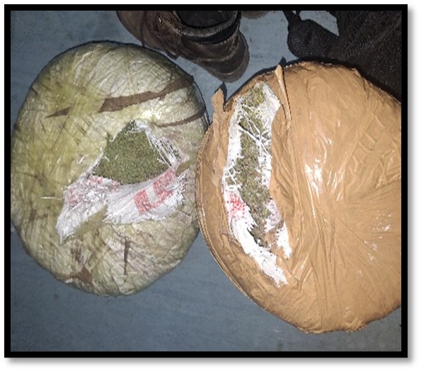 a false identity, who picked up the packages. He was escorted for security re-screening, where 16 kg of marijuana wrapped in two 8kg packages were confirmed.