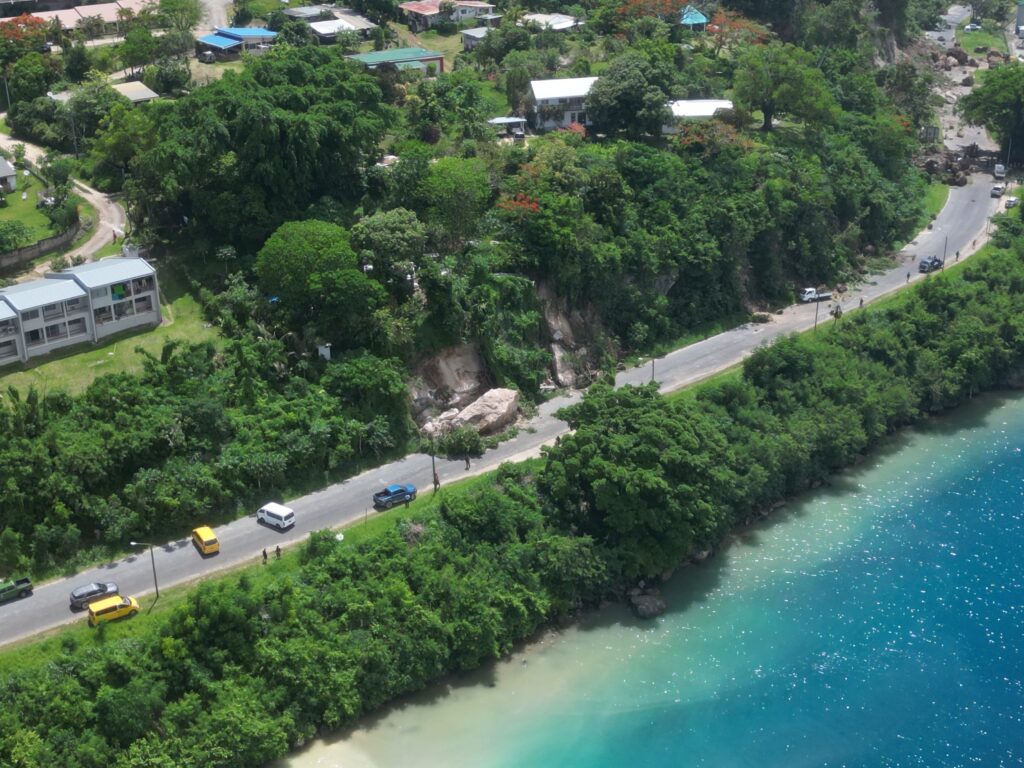 Dan McGarry, a Vanuatu-based journalist, posted drone footage of major landslides near Vanuatu’s international shipping terminal.