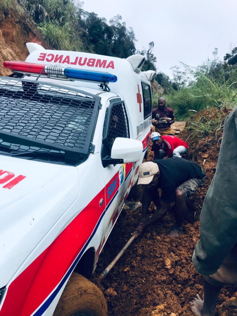 The whole exercise of digging, pushing and pulling through piles of debris took them three hours before the vehicle arrived in Simbu.