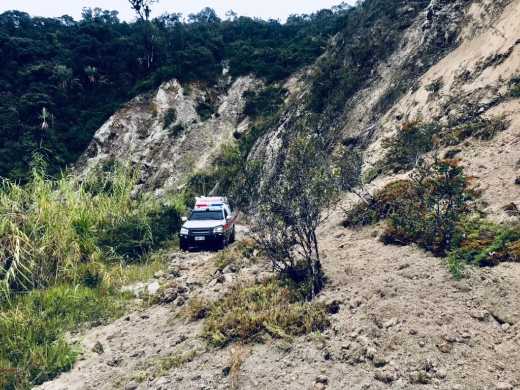The Kumura Foundation Ambulance was responding to the emergency when it came across the massive landslide that completely blocked off the road in the Pomie Village area. However, the woman was able to give birth without major complications.