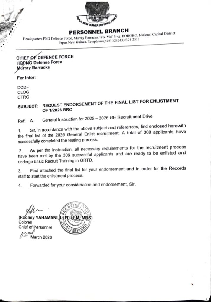Evidence now directly implicates the Minister and the Chief of Defence Force (CDF), Rear Admiral Philip Polewara, alongside Chief of Personnel Colonel Rodney Yahamani, who oversees recruitment.