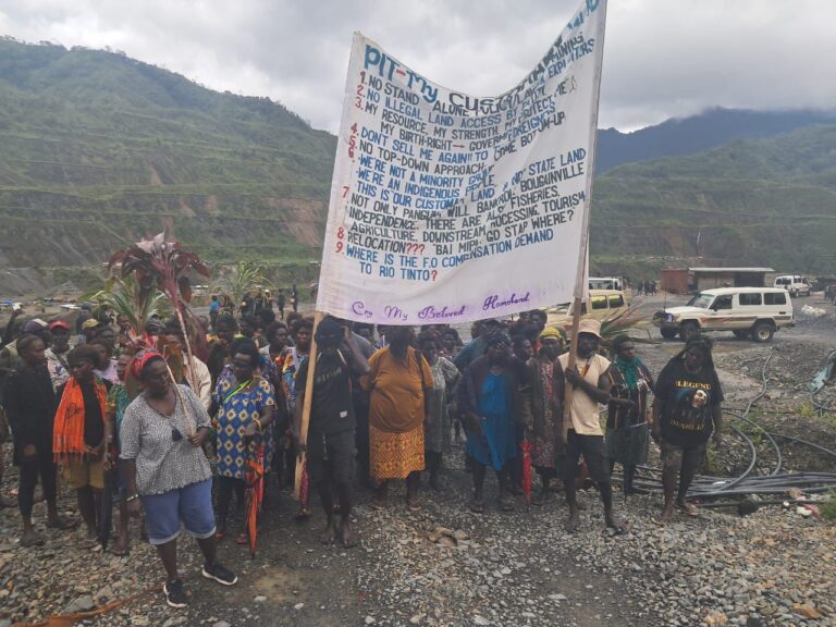 At least several dozen staged a protest near the mine site in central Bougainville against Autonomous Region of Bougainville (AROB) President Ishmael Toroama’s plans to allow India-based Lloyds Metals and Energy Limited (LMEL) restart the mine, which was shut down by a local uprising over 35 years ago.